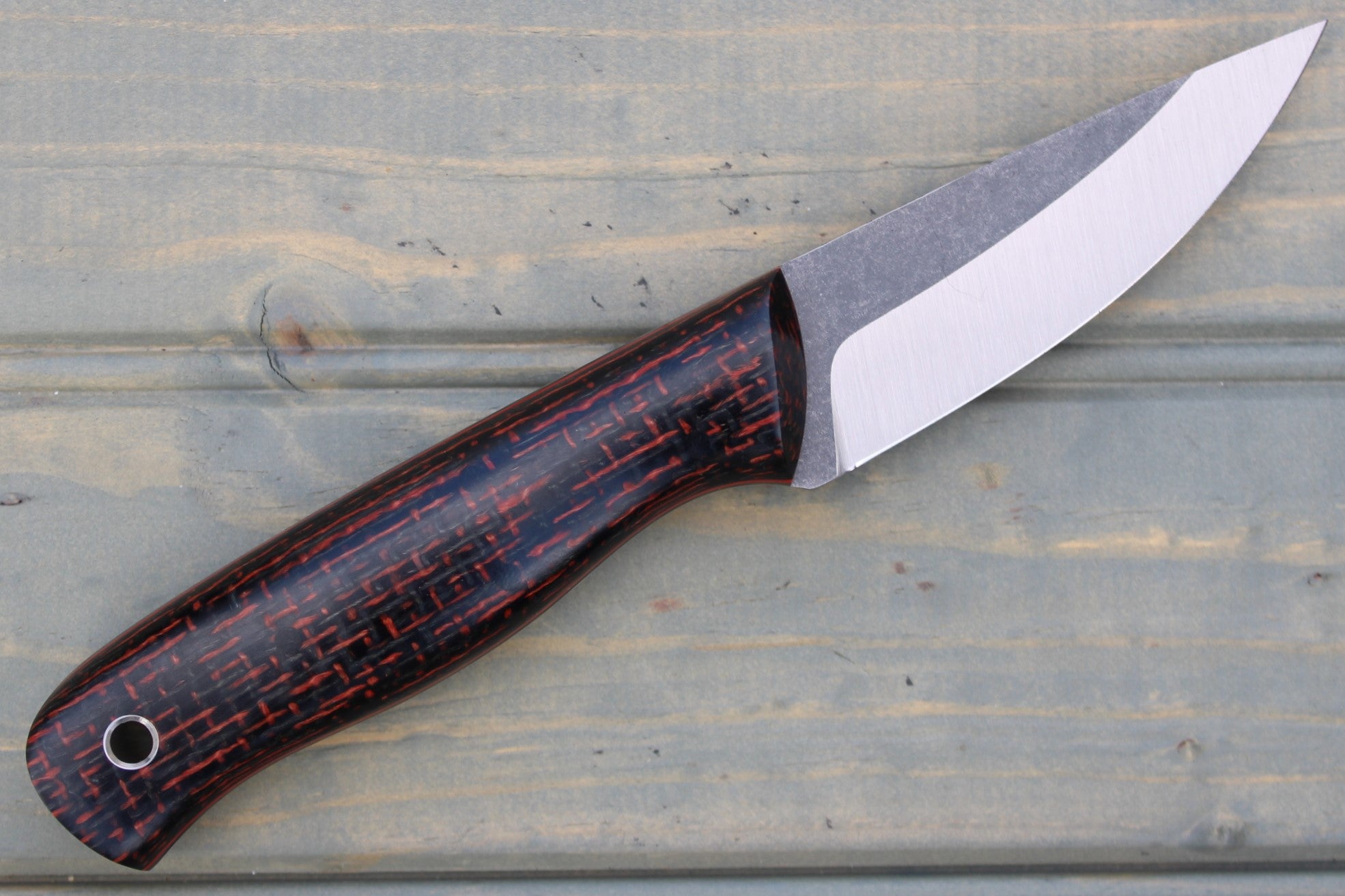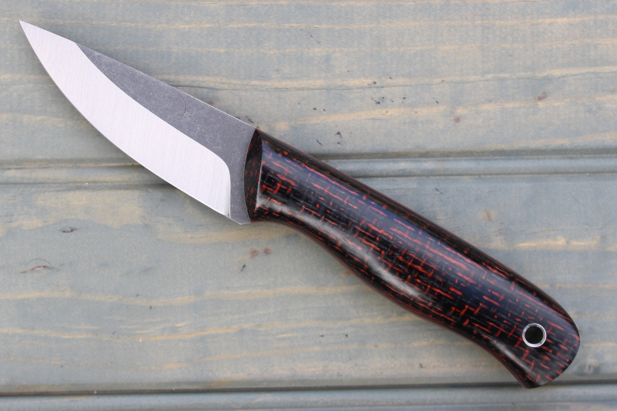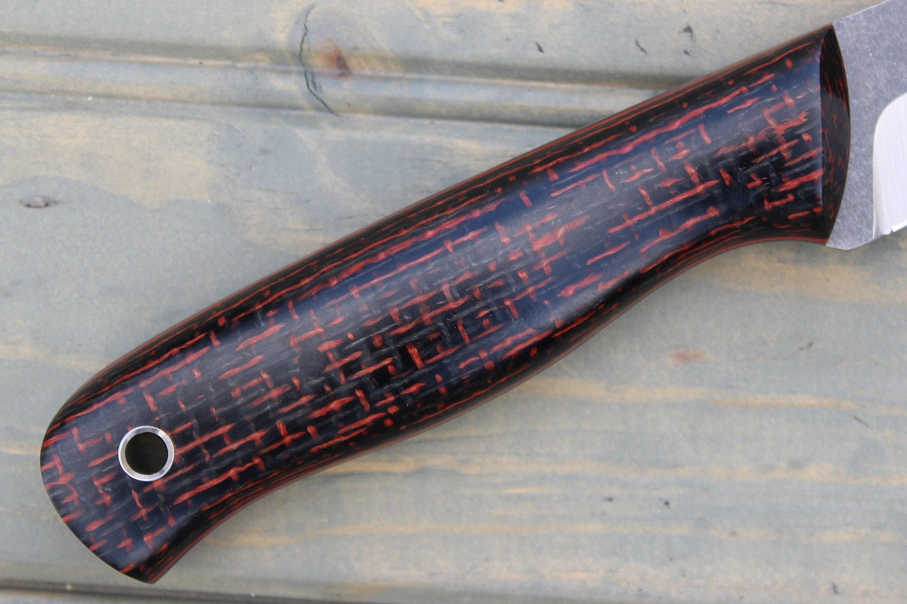 Handle: Red/Black Burlap Micarta, Black Canvas Micarta Liner, Red G10 Pinstripe, Black Micarta Pins