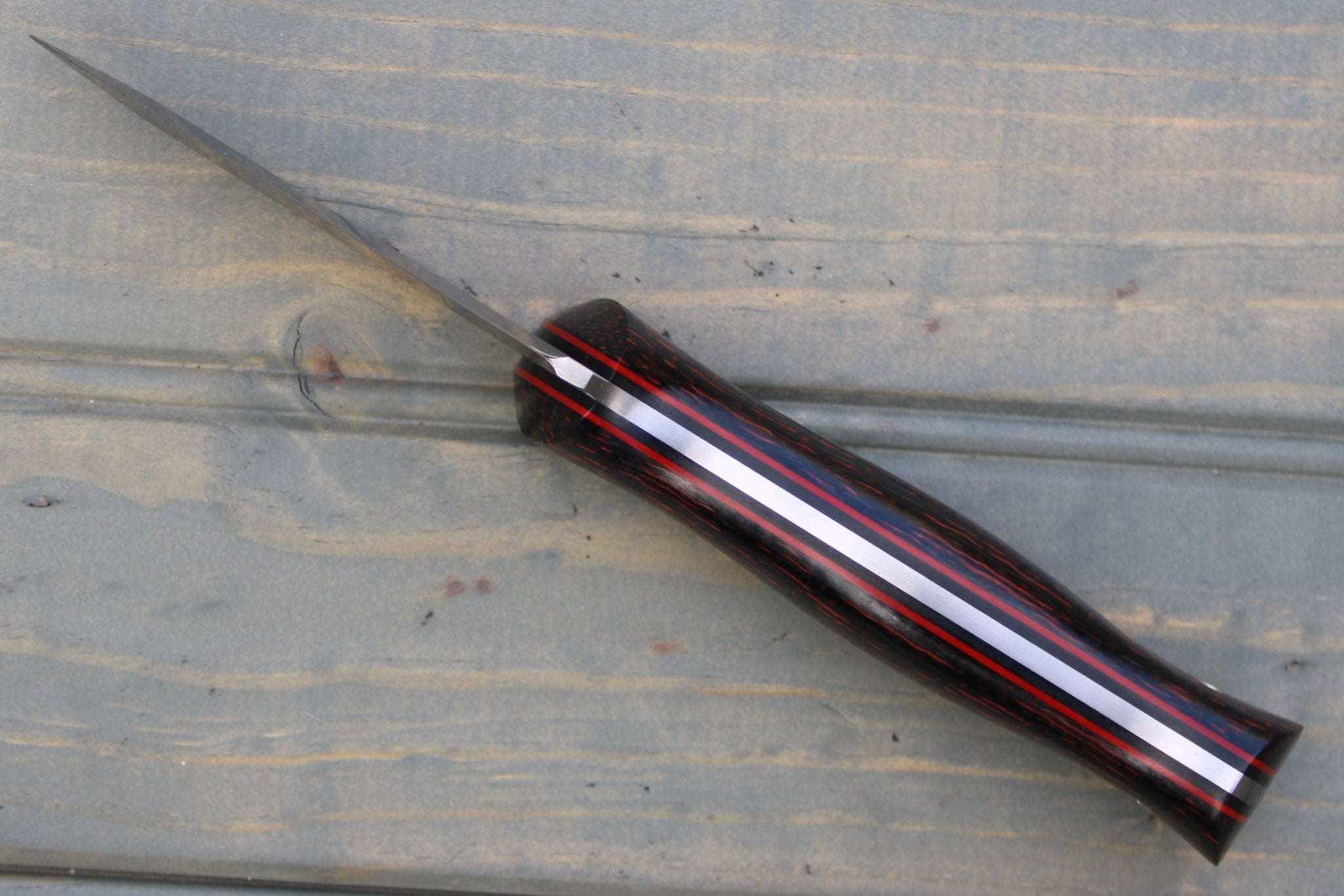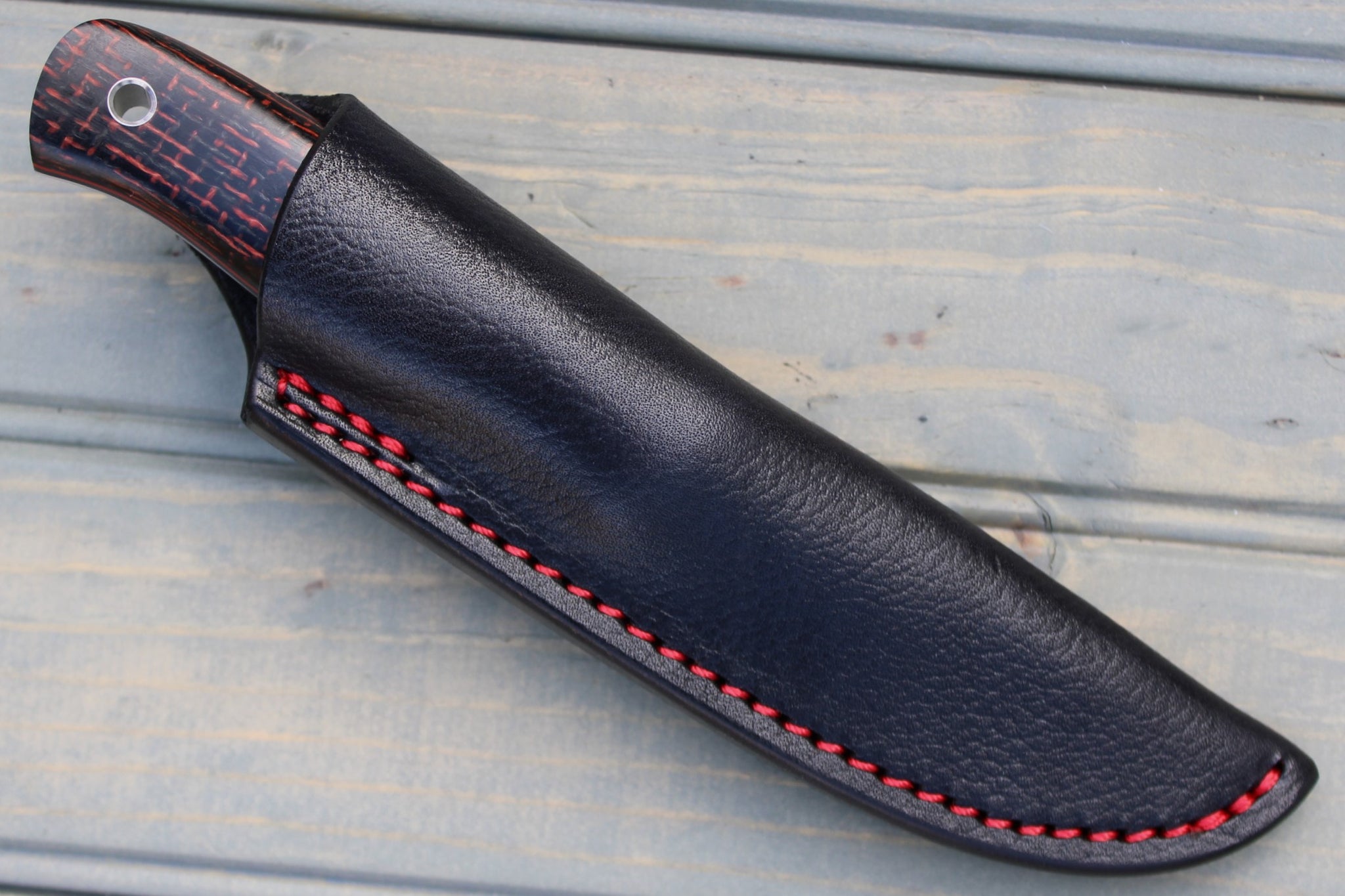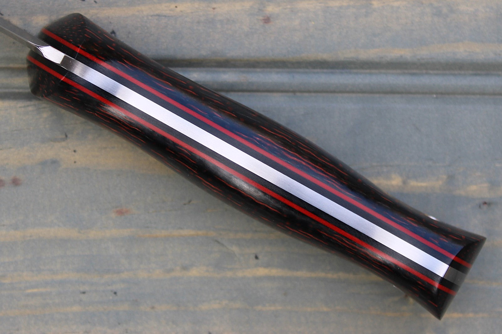 Handle: Red/Black Burlap Micarta, Black Canvas Micarta Liner, Red G10 Pinstripe, Black Micarta Pins