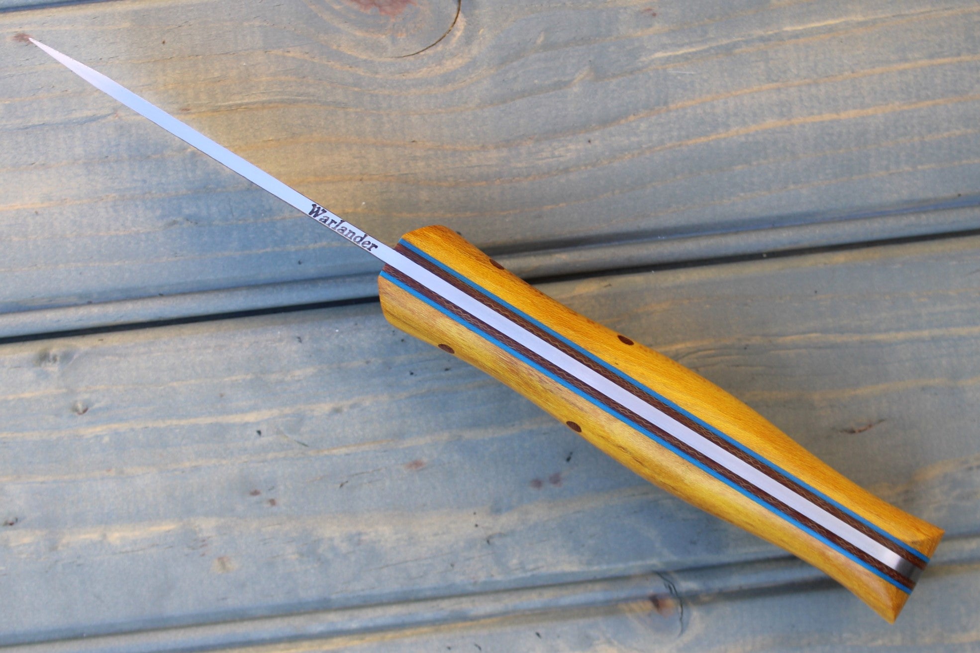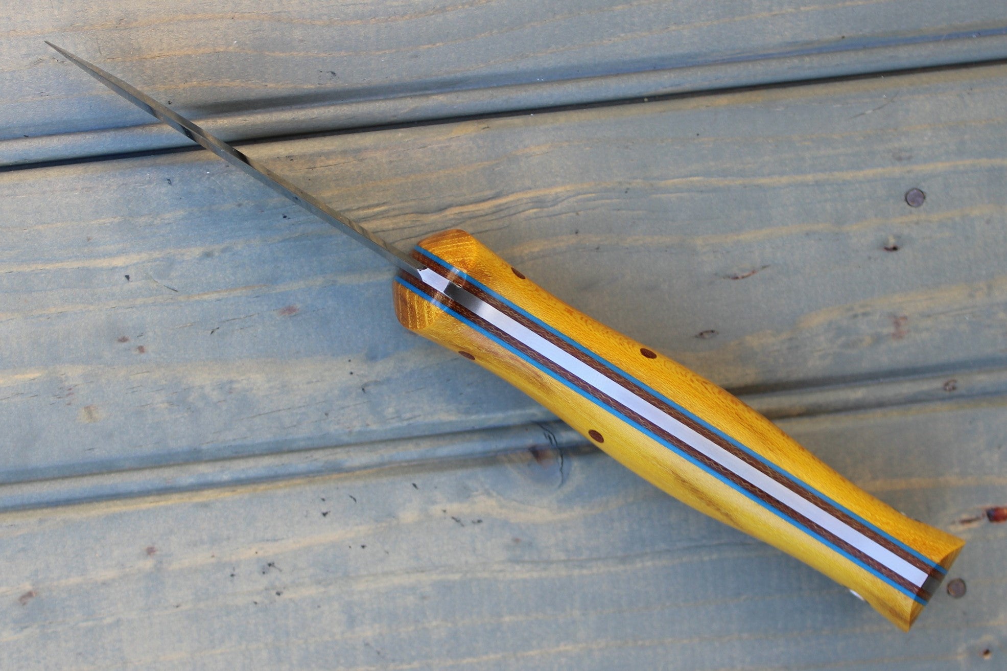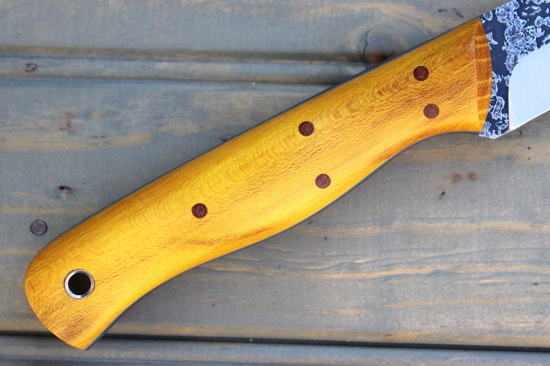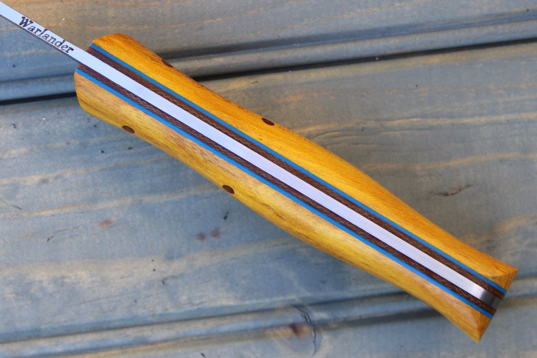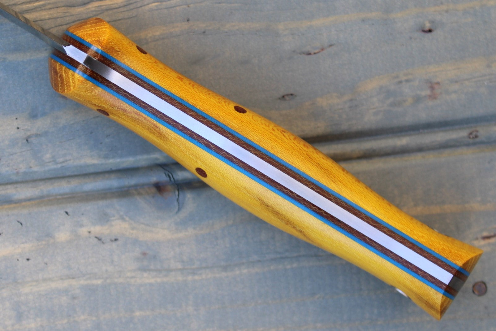 Handle: Osage, Natural Canvas Micarta Liner, Blue G10 Pinstripe, Micarta Pins